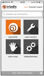 Deze app biedt Lean kennis, stappenplannen, voorbeelden en praktische handvatten om zelfstandig aan de slag te gaan met continu verbeteren. Directe hulpvragen kunnen via de app gesteld worden. De app wordt steeds verder ontwikkeld zodat deze steeds meer waarde voor de gebruiker toevoegt.